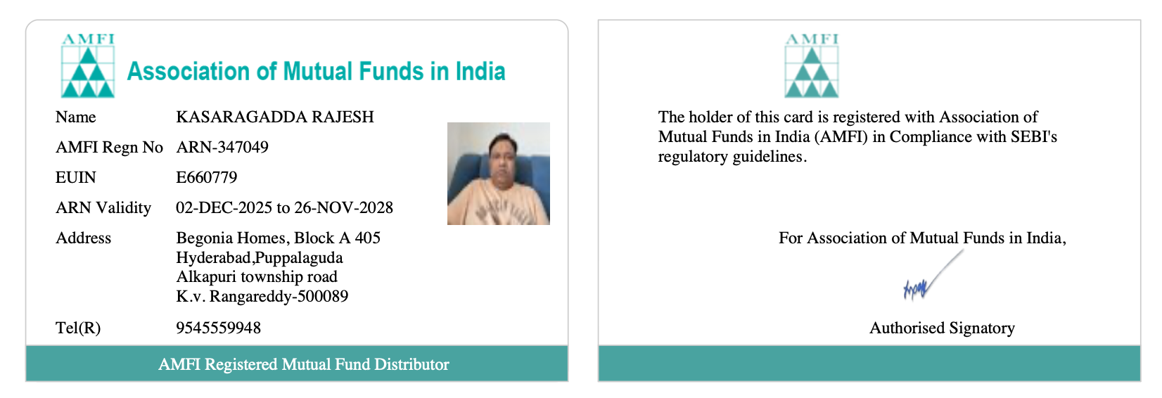 I am Rajesh, an AMFI Registered Mutual Fund Distributor, building tailored portfolios across Mutual Funds, NPS & Fixed Deposits to achieve client financial goals through strategic investments.
